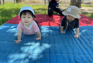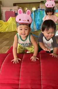 マットの上をハイハイしたり、歩いたりして、日々の遊びの中でかけっこ