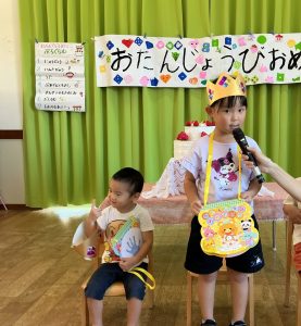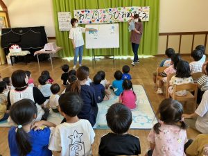 新着情報 2025.10.14 10月誕生会🍰 10月生まれの誕生会がありました🍰 先生の出し物では゛ねこのおいしゃさん゛のパネルシアターを見ました。 子どもたちも真似をして猫のポーズをしたり、一緒にたのしそうに歌っていました♬ ぞう組(年長児)の出し物では゛ワイルドアットハート゛の踊りを披露しました。 体を揺らしながら嬉しそうに見ていました! 前へ 一覧へ 次へ