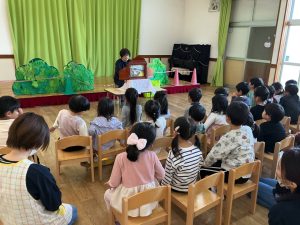 新着情報 2025.10.30 がらがらどん🐐 10月のがらがらどんのお話会に参加しました🐐 3歳児と4歳児は「さつまいももち」「やさいさん」「おつきさまにばけたいの」等、季節の絵本や大型絵本 を読んでいただきました! やさいさんの大型絵本では葉っぱを見て、「だいこんだよー!」「これはさつまいもだよ」 と大盛り上がりで楽しんでいた子どもたちでした🍠 最後に「あんころもち」の手遊びをみんなで一緒にしました♪ 前へ 一覧へ 次へ