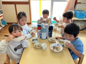 新着情報 2025.11.21 お楽しみメニュー(11月誕生会)🎂 〈お楽しみメニュー〉 スタミナ焼肉丼、かみかみマヨサラダ、わかめのみそ汁 〈おやつ〉 ぶどうカルピス、さつま芋スティック 前へ 一覧へ 次へ