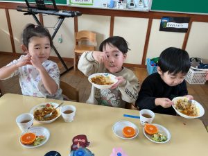 新着情報 2026.01.09 お楽しみメニュー(1月誕生会)🎂 〈お楽しみメニュー〉 ウインナーカレー、チーズサラダ、みかん 〈おやつ〉 ホットココア、あんぱん みんな大好きなカレーを嬉しそうに食べていました☺ 前へ 一覧へ 次へ