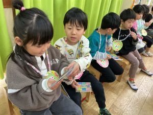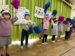 新着情報 2026.03.12 お別れ会🌷 年長児と退園児のお別れ会がありました。 ¨思い出のアルバム¨を歌い、各クラス順番にお別れする友だちにプレゼントを渡しました。 「一緒に遊んでくれてありがとう」と言って一人ずつ渡しました。 ぞう組さんからお返しにメダルを貰い、嬉しそうな子ども達でした☺ ぱんだ組さんの出し物は¨トゥントゥンサンフールに恋してる¨の曲に合わせて踊りを披露してくれました。 歌に合わせて体を揺らしたり、口ずさんで喜んで見ていました♬ 前へ 一覧へ