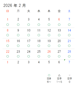 ショートステイ空床状況 ショートステイ空床状況 令和8年1月6日現在 ※変動がありますのでお気軽にお問い合わせください。 ※送迎は日曜以外は全て対応しております。(祝日対応可) TEL:03-5613-1176 (相談員:根本・斎)