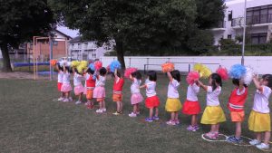 秋空の中、園庭で様々な競技に取り組み、友達同士で楽しむことができました。