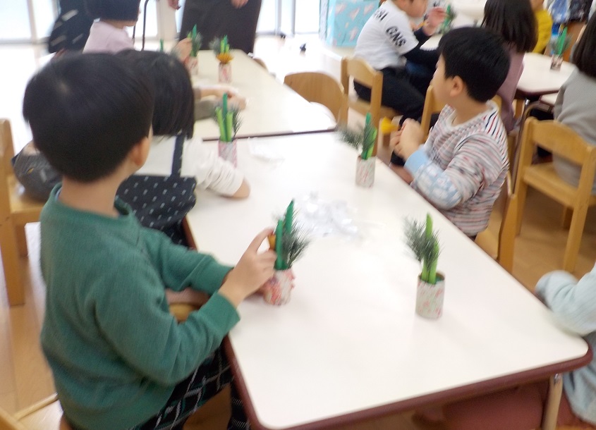 新着情報 2021.12.24 門松作り 12月22日(火)ぞう組で正月に向けて門松作りを行いました。 細かい作業が多くてむずかしかったけど、先生の説明を聞きながらかわいらしい門松を作ることができました。 先生の説明を聞きながら作成しました 門松の完成です 前へ 一覧へ 次へ