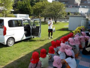 3歳女児がバスに置き去りにされて死亡した事件を受け、万が一に備えて車内に取り残された園児がクラクションを鳴らし続けて助けを求める初めての取り組みを行いました。この取り組みは、年少、年中、年長の園児が参加しました。初めに先生から、車内では大声で叫んでもほとんど聞こえない。誰かが助けに来てくれるまで「クラクションを鳴らし続けることが大切」といった説明を受け、運転席に座ってクラクションを実際に操作して音を鳴らす体験をしました。実際に手で押したり、力が足りないときに備えて水筒で押したり、ハンドルに座ったりしてクラクションを鳴らしました。