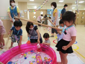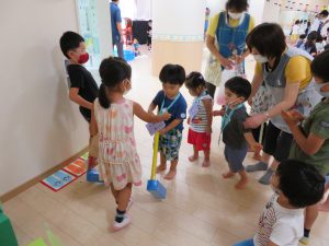 新着情報 2020.08.25 なつまつり(乳児クラス) 8月7日に乳児のなつまつりを行いました。 ぞう組のお兄さん、お姉さんたちがお手伝いをしてくれました。 スタンプカードにスタンプを押してくれたり、「ここで待っててね。」と やさしく声を掛ける姿も・・・。 前へ 一覧へ 次へ
