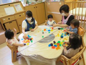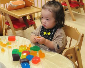 新着情報 2021.07.27 寒天遊び(ひよこ組) ひよこ組が寒天遊びをしました。 寒天は食紅で色を付け、冷やしてあります。 これは何だろう??? 冷たくで気持ちいいな~😊 手で押したり握ったり、寒天の感触を楽しんでいたひよこ組さんでした☆彡 前へ 一覧へ 次へ