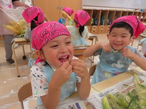 新着情報 2022.09.02 とうもろこしの皮むき(ぞう組・きりん組) 食育の一環として、おやつの「茹でとうもろこし」の皮むきをしました。 「かたーい💦」と言いながらも頑張って皮をむいていくと、 見慣れた黄色い実が見えてきました! 自分で皮をむいたとうもろこしは格別に美味しかったようです💛 前へ 一覧へ 次へ