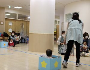 ゴーゴー引っ張り競争ではお家の方に乗り物を引っ張ってもらい楽しそうにしていました。
