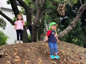 築山に登ったり追いかけっこをしたり、体を動かすことも