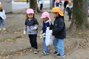 新着情報 2025.11.13 530運動(きりん組・ぞう組) 地域の環境美化活動「530(ゴミゼロ)運動」を行ないました。 子どもたちは東綾瀬公園や保育園周辺の道路へ出かけゴミ拾いをしました。 素敵な事ではありますが、あまりごみが見つからない中でも、 「ここにあったよ!」「見つけた!」と一生懸命探してくれました。 活動を終了し、子どもたちからは、 「綺麗になって嬉しかった!」「ごみはもちかえろう!」という言葉が出てきました。 身近な場所をきれいにすることで、地域の環境に目を向ける良い機会となりました。 前へ 一覧へ