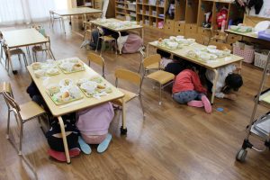 新着情報 2026.01.30 避難訓練 今月避難訓練は昼食中に行いました。 給食を食べている中、訓練が始まりましたが、保育士の話をしっかり聞いて机の下に隠れ、 落ち着いて避難することができました。 前へ 一覧へ 次へ