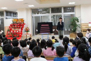 ひなまつりは女児の成長をお祝いする行事、子どもたちの成長を願い、楽しい会が開かれました。