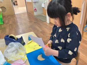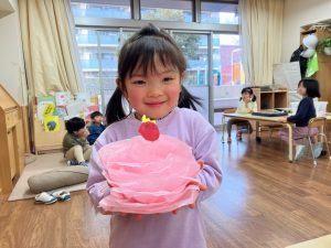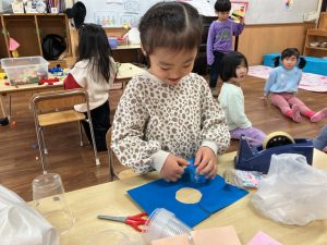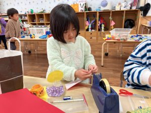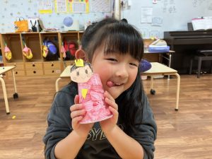 新着情報 2026.03.10 ひな飾り制作(きりん組) ひな人形やぼんぼりなどのひな飾りを制作しました。 トイレットペーパーの芯、プリンカップ、空き箱等の廃材、 画用紙やおり紙、花紙等さまざまな素材を用意すると、 好きなものを選んでそれぞれオリジナルのかわいらしい作品を作っていました。 前へ 一覧へ 次へ