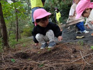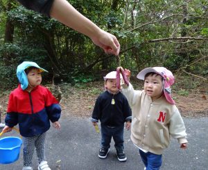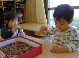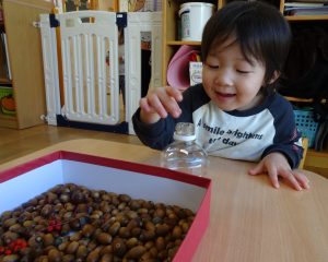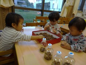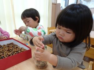 園庭で遊ぶたびにみんなで拾ったどんぐりや