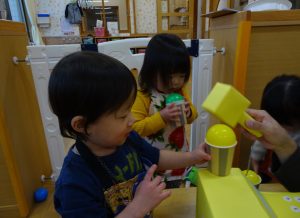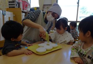 アイス屋さんになりきるのが大好きなりす組の子どもたち。
