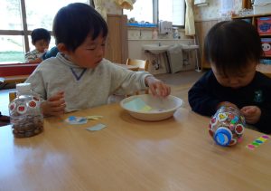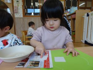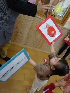 保育者や友だちと見せ合って喜んでおられましたよ。