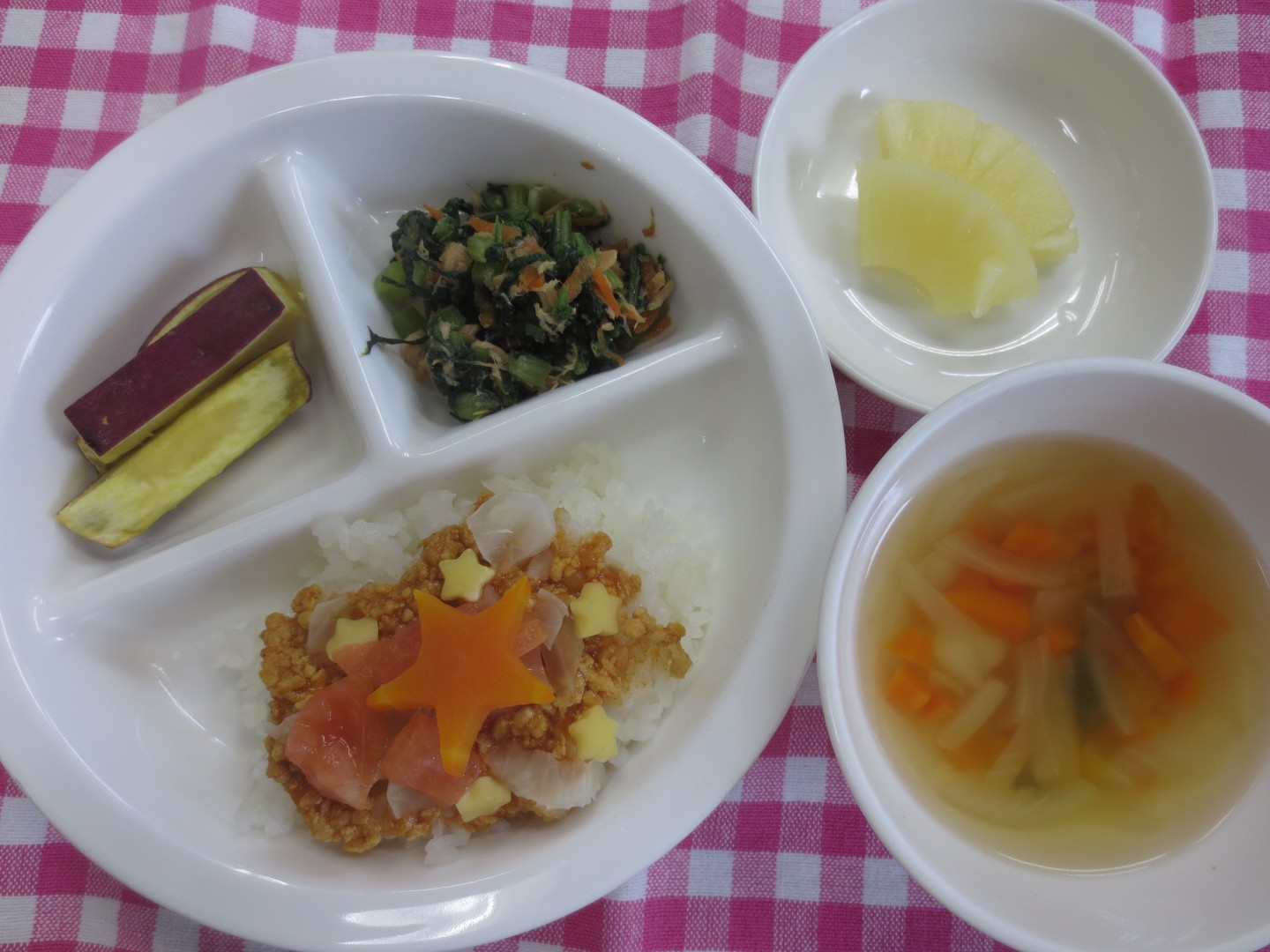 毎月1回、わくわく給食として園の吉田管理栄養士が