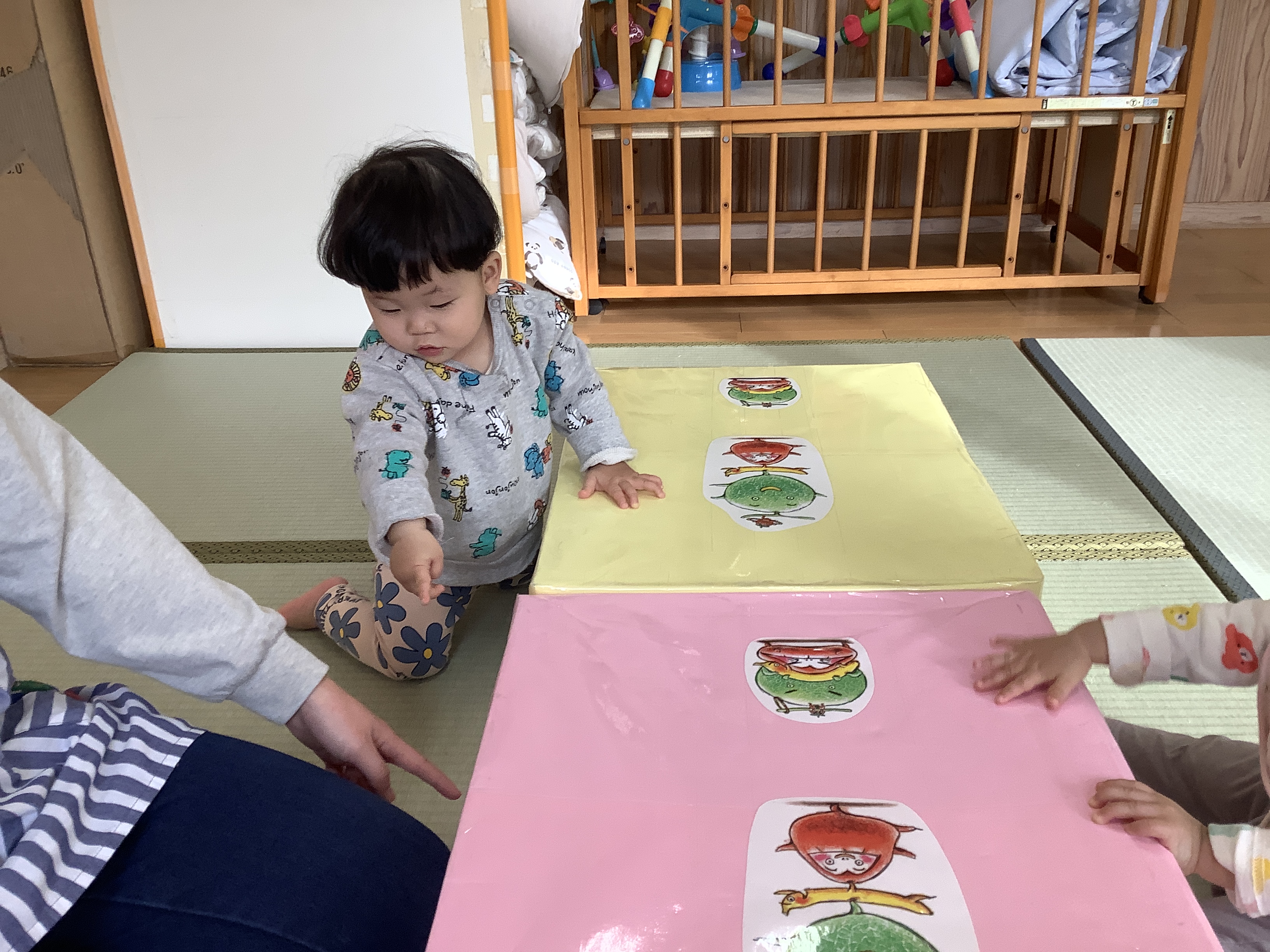 だるまさんのイラストにも興味津々な