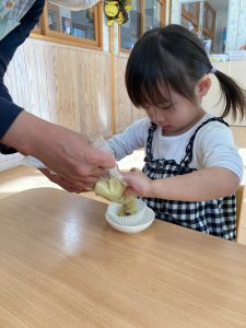 みんなで収穫したさつま芋でスイートポテト作りをしました!
