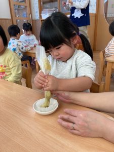 柔らかさと匂いを感じながらクッキングを楽しんでいました。