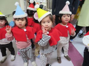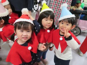子どもたちはサンタの衣装を着て、かわいい姿に大変身!