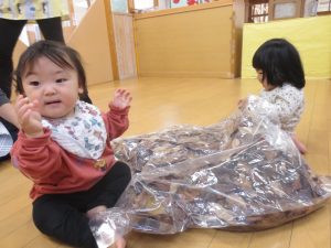 心地良さを感じるなど、色々な感触遊びを楽しんでいる