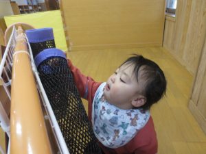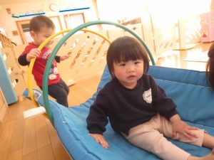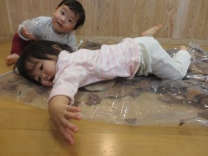 12/12に落ち葉マットとコロコロスロープで遊びました。