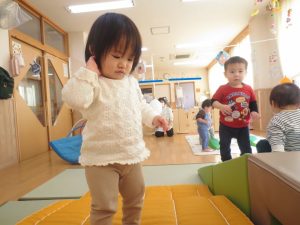保育士の真似っこをして、お友達にも