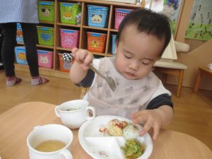 スプーンを使って食べるのも上手になってきましたよ。