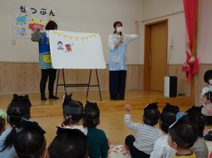 パネルシアターで、“今日はどんな日?”なのか話を聞いたり、