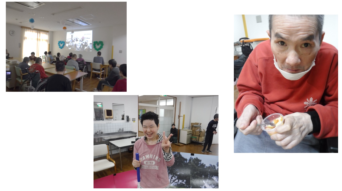 新着情報 2025.03.21 【入所】令和6年度お疲れ様会! ご利用者の皆様と令和6年度を振り返り、労をねぎらう会を行いました。 活動を振り返るスライドショーを見たり、初めての「インゴル」というスポーツにも挑戦! 「歩くことを頑張った。」「ワークにがんばった。」など自分の頑張った事を発表されました。 一年間を振り返り、思い出に浸りつつ新しい事にもチャレンジをされた皆様は 楽しそうな表情をされていました。 締めくくりにプリンアラモードを食べられました。 来年度もよろしくお願いします。 前へ 一覧へ 次へ
