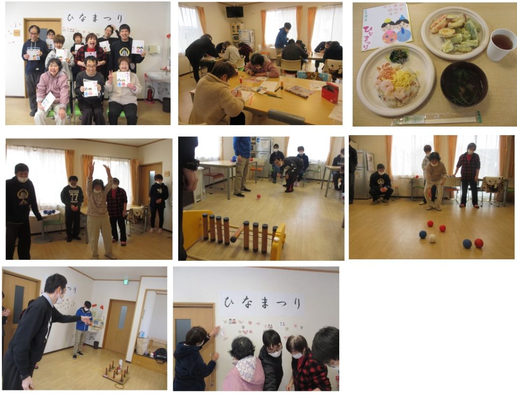 新着情報 2026.03.18 【グループホーム琴浦】ひなまつり行事 3月8日(日)にひなまつり行事を行いました。 作品を作成したり、輪投げ・ボーリング・ボッチャ等行い、 体も動かし楽しみました! チーム戦で行い、とても盛り上がっていました! 利用者同士で会話も弾み、楽しい時間を過ごすことができました。 前へ 一覧へ