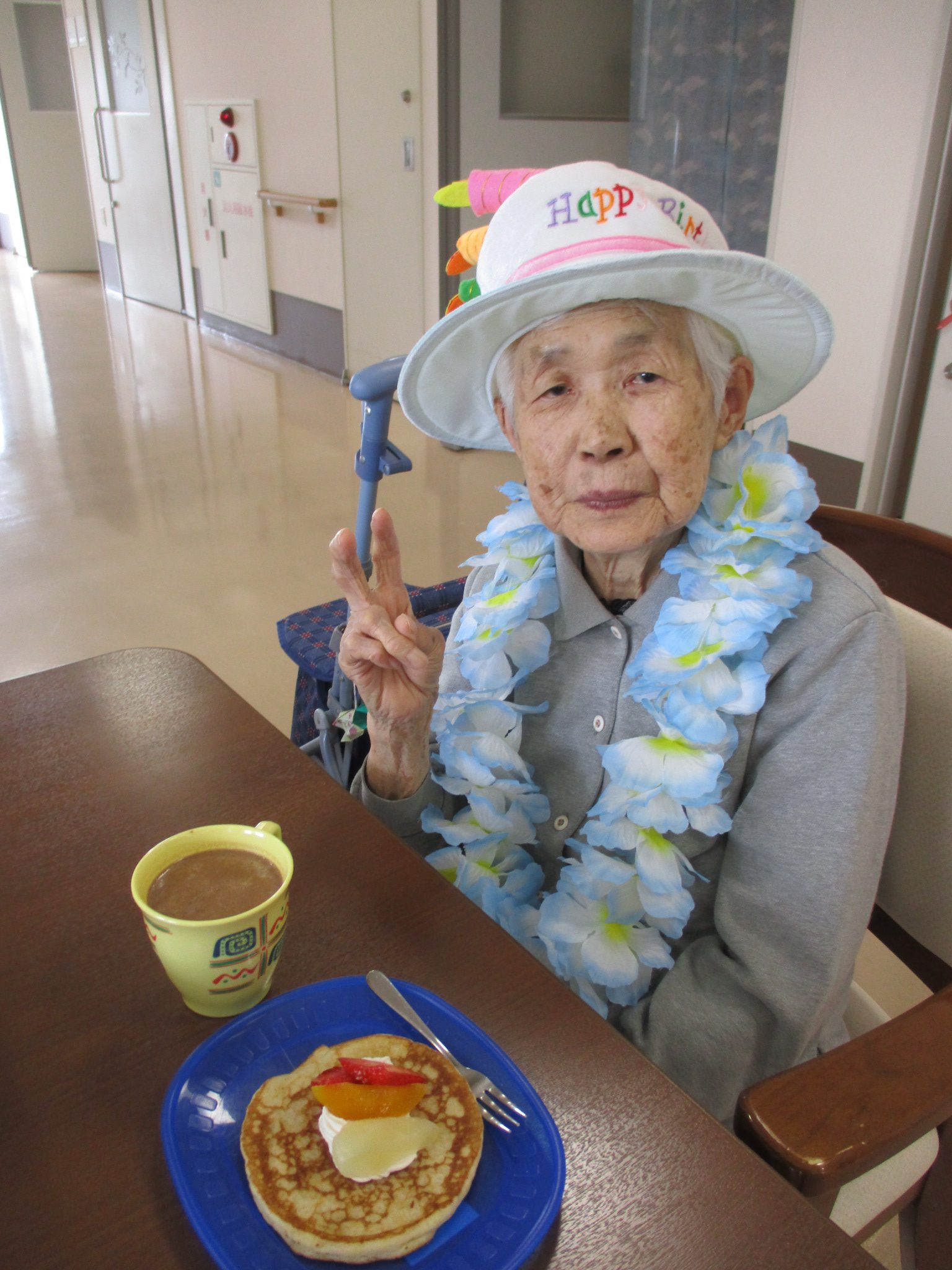 新着情報 2021.04.09 6階 お誕生日会 6階では、1・2・3月合同のお誕生日会を行ないました。 パンケーキを焼くバターの香りがフロアに広がり「美味しそう。」「いい香りがする。」と、とても好評でした。 お誕生日の方には、バースデーソングを皆で歌いお祝いしました。 前へ 一覧へ 次へ