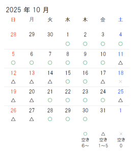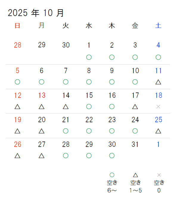 ショートステイ空床状況 ショートステイ空床状況 令和7年10月1日現在 ※入退所の件数により、〇であってもお受け出来ないこともございますので、ご了承ください。 ※日々、変動がありますのでお気軽にお問い合わせください。 ※送迎は日曜・祝日以外の月曜日~土曜日にて対応しております。 短期入所利用申込書 (予約期間記入欄変更。R6.9.2) 加算項目一覧 (R7.2.1~)