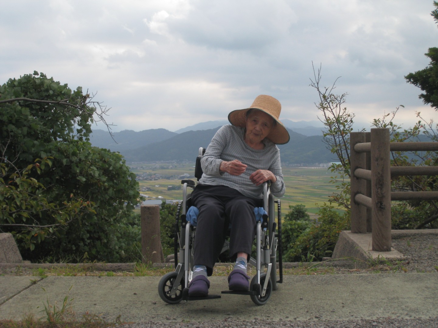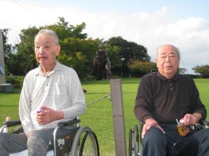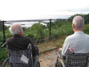 東郷池の展望台、泊の潮風の丘へ外出しました。 景色を見られながらおやつをいただきました。 「久々だな!ええなぁ!」と楽しまれておられました。