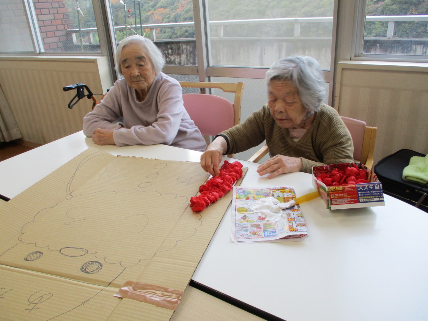 新着情報 2025.12.23 サンタクロース🎅 もうすぐクリスマスということで… サンタクロースの壁面作りをしました。 皆様で花紙をくるくる何個も丸めたり、ボンドで花紙をつけ… とても可愛らしいサンタが完成しました♪ 出来上がった物を壁に飾ると「わ~。可愛いなぁ。上手に出来たわ。」と喜ばれていました。 前へ 一覧へ 次へ