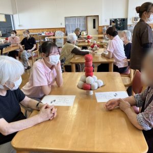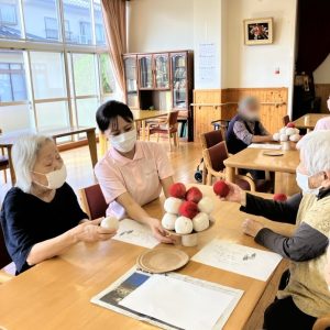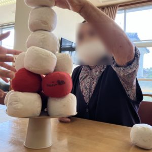 新着情報 2025.10.09 十五夜お月様ゲームで「わー‼」 10/6(月)は十五夜の日にちなんでお盆に団子(玉)を乗せるゲームを行いました。 高く積み上げた団子が崩れてしまうと「わー‼」と歓声が上がり笑顔が沢山。 各テーブルでは、十五夜にちなんだ話や「団子が食べたい」等会話が弾み、看護学生と楽しい時間を過ごしました。 倉吉総合看護専門学校の実習で高齢者の日常生活援助について勉強をされています。 看護師に向け頑張ってください‼ 前へ 一覧へ 次へ