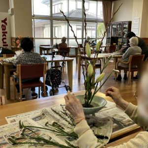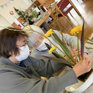 講師の先生のご指導のもと、生花をゆっくりと楽しむ時間となりました。