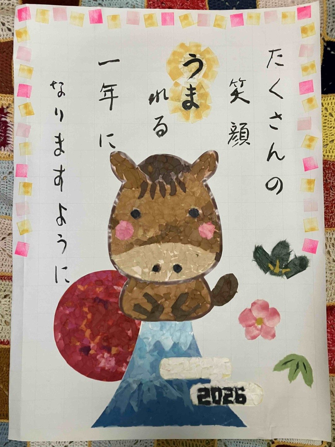 「たくさんの笑顔が“うま”れる一年になりますように」という願いを込めて作られた作品は、周囲から「いいね!」「可愛いですね。」と声を掛けられると、「ありがとう」「うれしい」と笑顔で話されていました。