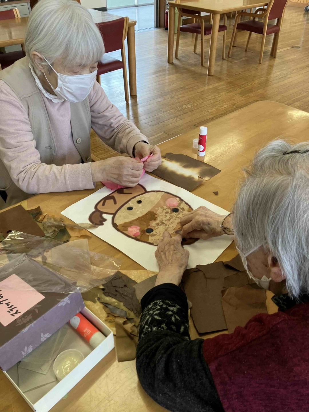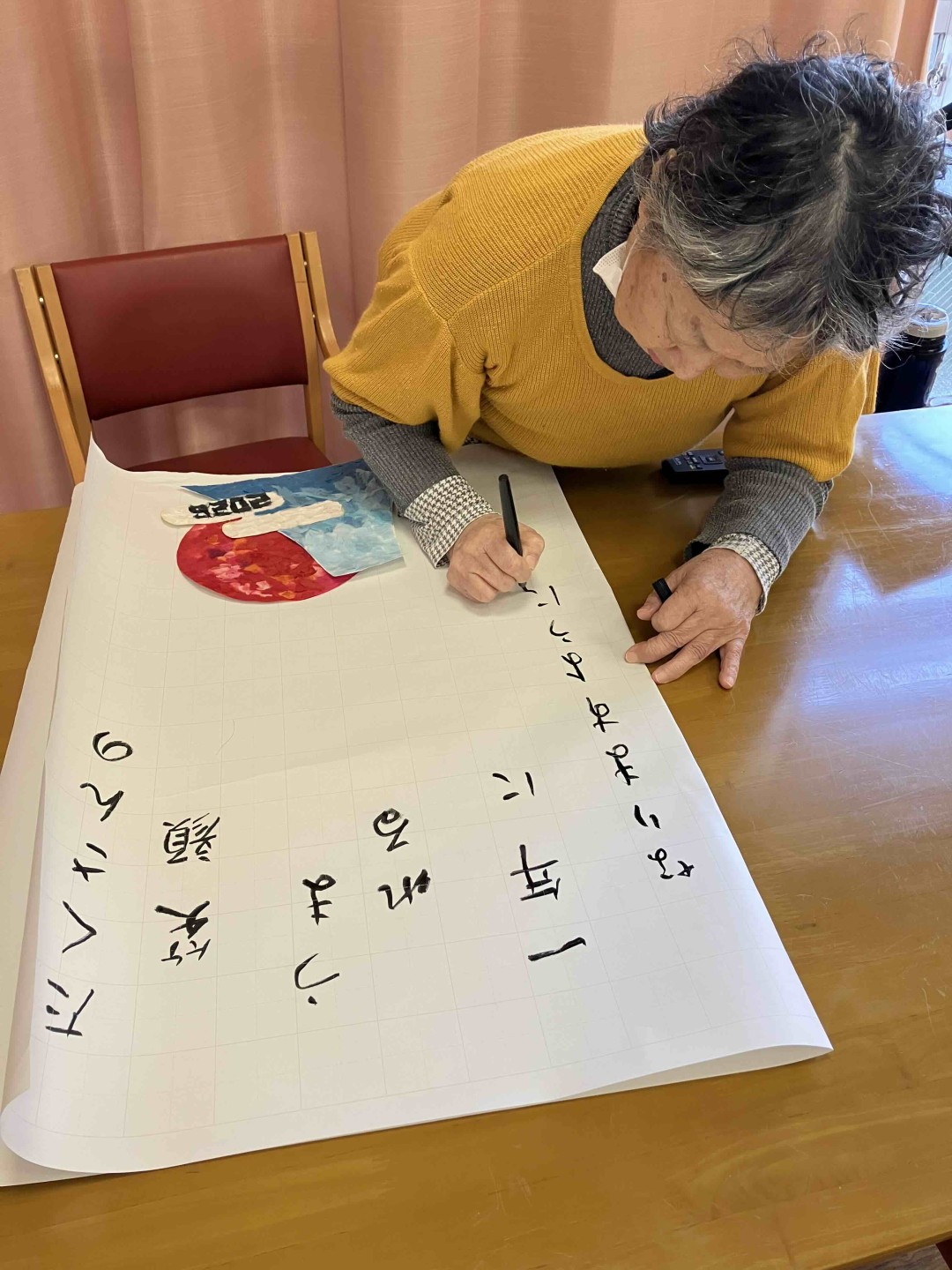 ちぎり絵を担当する方、文字を書く方など、それぞれが役割を分担し、協力しながら一つの大きな作品を完成させました。
