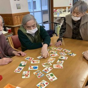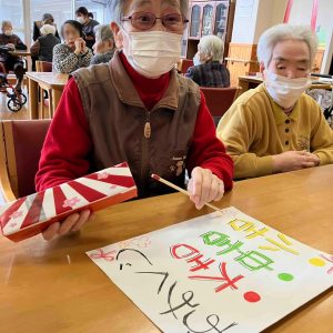 新着情報 2026.01.08 正月遊び 元日(木)、新年最初の行事として「正月遊び」を行いました。 福笑い・かるた・すごろく・トランプなどを楽しみ、笑顔あふれる時間を過ごしました。 福笑い かるた おみくじ また、食堂に手作りの神社を飾り、今年一年の無病息災を願ってお参りをしていただきました。 前へ 一覧へ 次へ