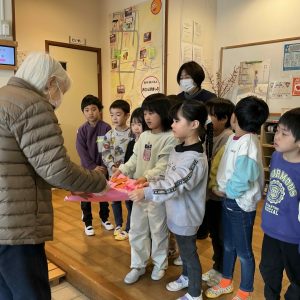 「卒園おめでとう」の手紙とプレゼントを届けに行きました。