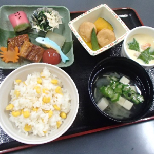 7月29日の昼食時に、7月のお祝いご膳を提供させていただきました。