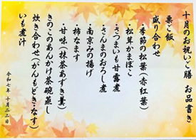 10月22日の昼食時に10月のお祝いご膳を提供させていただきました。