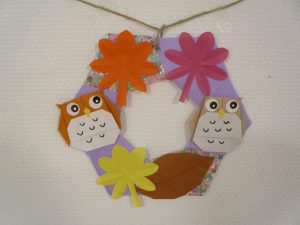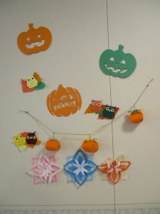 こないだまでは、ハロウィーン装飾、今は落ち葉リーフに変更し、
