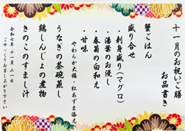11月21日の昼食時に11月のお祝いご膳を提供させていただきました。