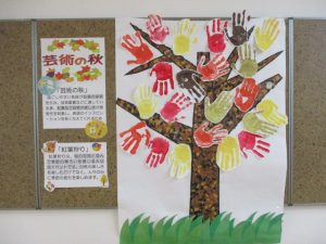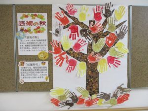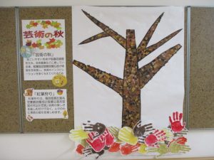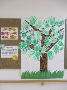 新着情報 2025.12.09 「芸術の秋」 秋と言えば、読書の秋、食欲の秋、芸術の秋、 ご利用者にご協力頂き、手形を葉っぱに見立てた樹木を作成しました。 秋なのに「緑の葉っぱ?」と最初は戸惑いますが、実は、、、施設外の木々の紅葉状況に合わせて葉っぱの色が変化する趣向を凝らした作品となっています。 緑の木々が紅葉し、最後は落ち葉に… 前へ 一覧へ 次へ