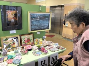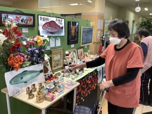 ご自宅で作成された絵画や小物入れ等を展示しています。